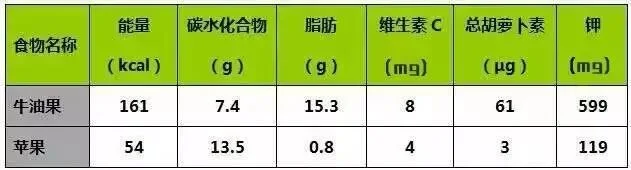 为了方便理解,我们将牛油果和大家最为熟悉的苹果进行比较: