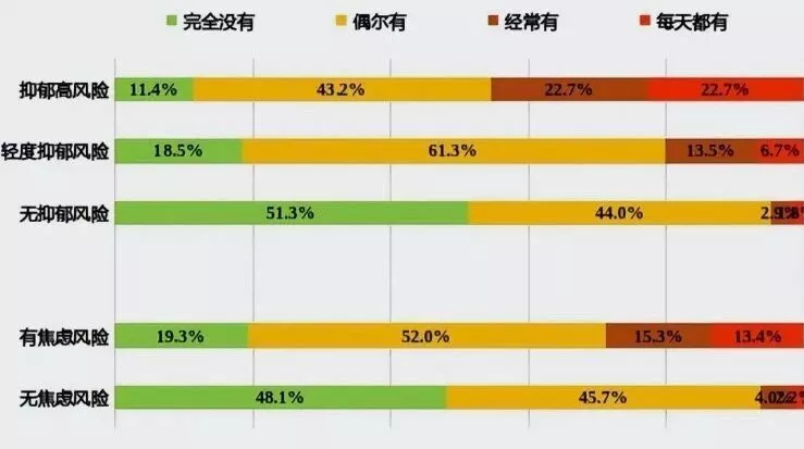 不同心理健康状况有不想上学想法的比例分布