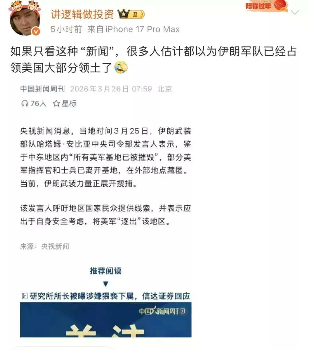 三是,我在想的是,为何这些媒体都在宣传伊朗节节胜利的新闻,是因为朴素的“正义感”吗?