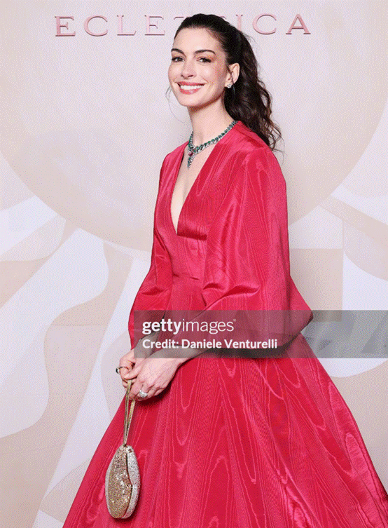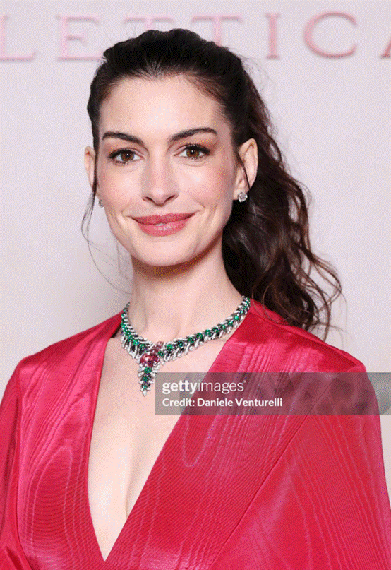 43岁的安妮·海瑟薇也难逃岁月的侵蚀,眼睛周围有了明显的细纹,她并没有刻意掩盖,这份真实的状态也丝毫不影响她的容貌。