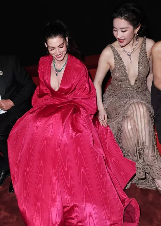 尤其是这次发布会上刘亦菲与安妮·海瑟薇同框,两位颜值“扛把子”的外形条件不分伯仲,即使是比较死亡的俯拍视角,也是两人“神图”。
