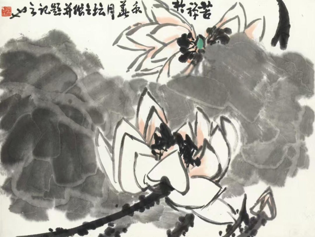 李苦禅 《大白荷》 中国画 34.5cm×45.5cm 1974年