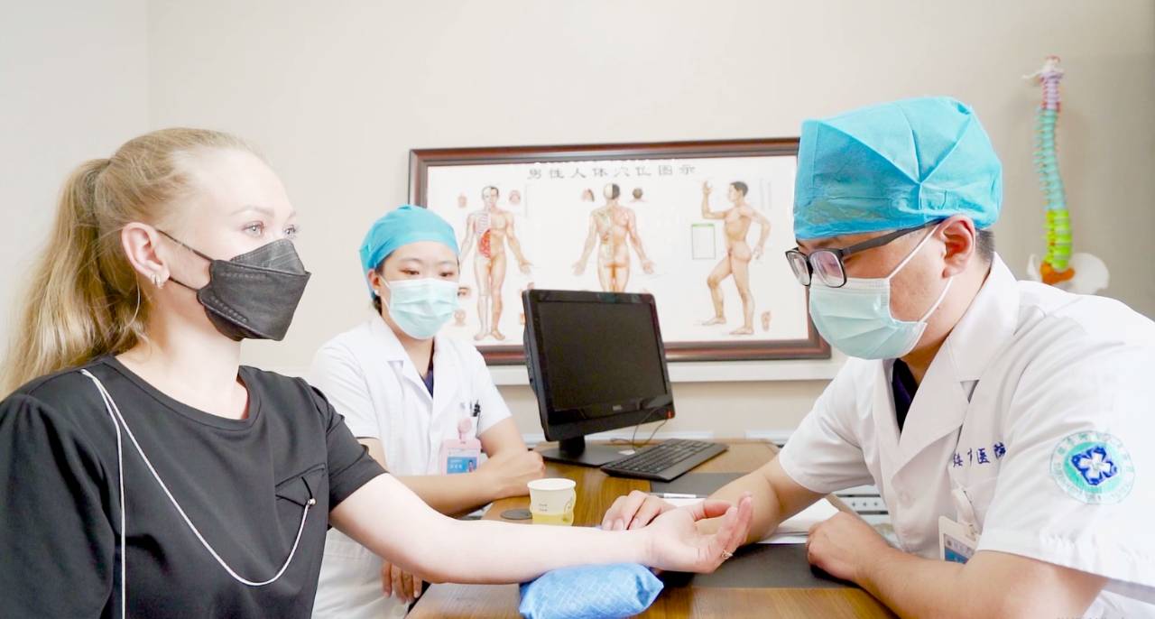 俄罗斯游客在绥芬河市体验中医。 绥芬河市文体广电和旅游局供图