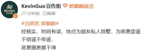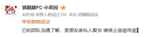 3月27日,网传一段曝时代少年团严浩翔疑似去KTV的视频,刘昊然、郭麒麟疑似也在场。而且有网友指出是,并非是普通的KTV,而是“商k”,由此引发热议。 对此,郭麒麟对接回应表示:“已和团队沟通了解,是朋友家私人聚会,请停止造谣传谣。”另外宣传组还补充称:“地点为朋友私人别墅”。