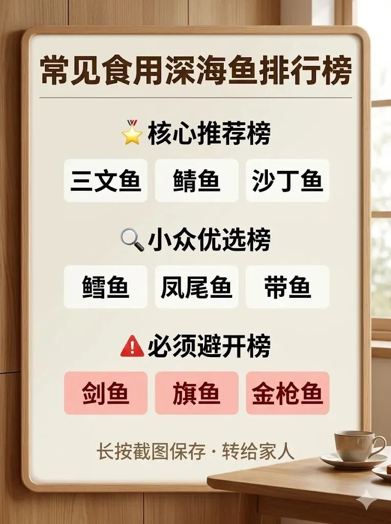 下面这张常见深海鱼排行榜,建议您长按截图保存,下次去菜市场或超市拿出来对比着买。