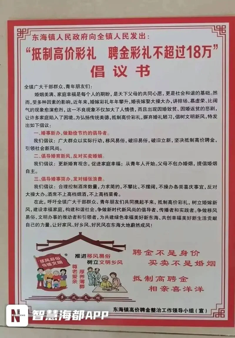 在更早一些的2017年,莆田已有地区发布“聘金彩礼不超过18万”的倡议书,喊出“聘金不是身价,买卖不是婚姻”的口号。