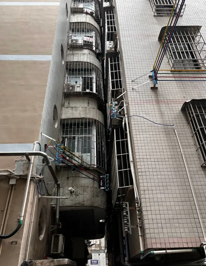 能租上握手楼都算生活条件不错,毕竟这里有得是低头抬头都得见的亲嘴楼。