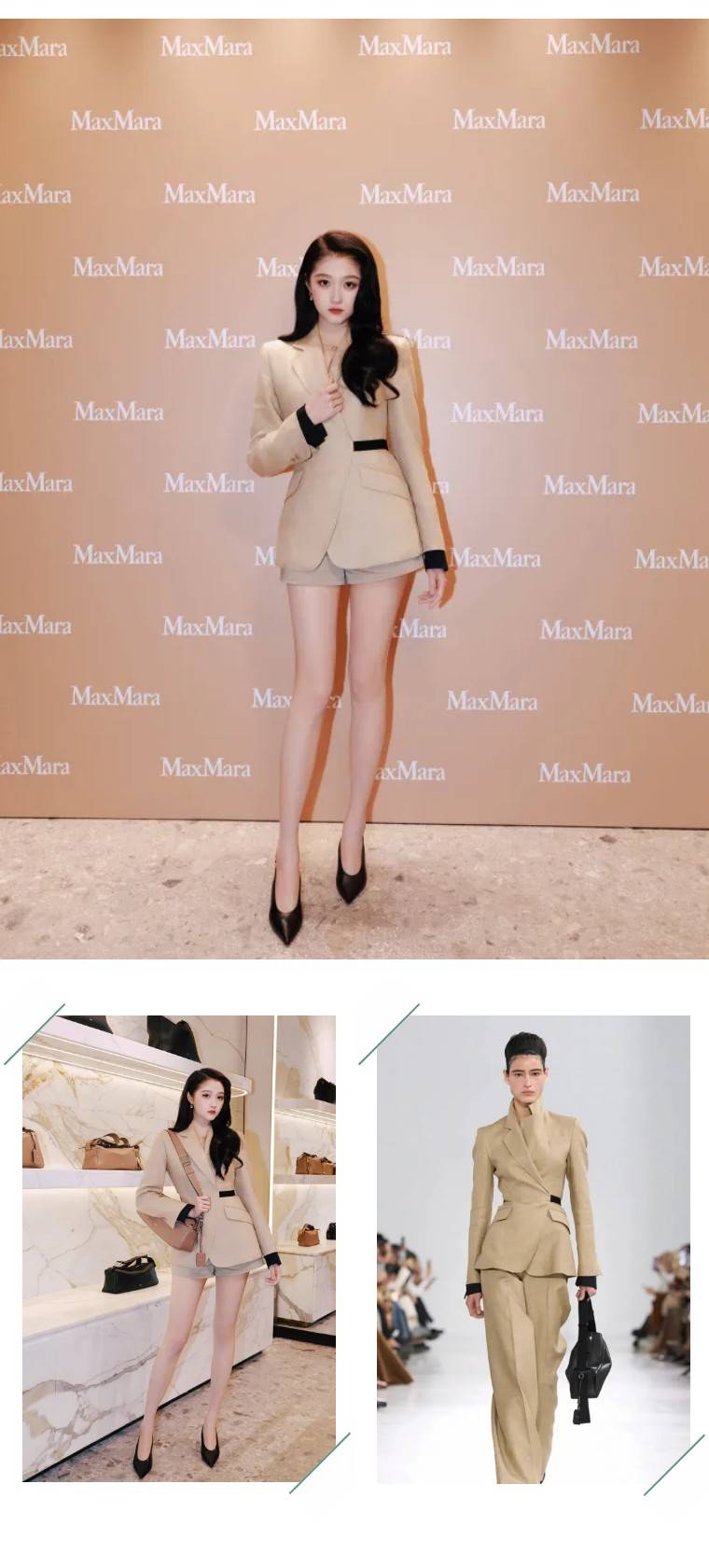 关晓彤出席Max Mara北京活动,品牌2026春夏系列浅驼色收腰西装+同色系短裤,经典的“下衣失踪”玩法,黑色细腰带+袖口撞色,瞬间优化身材比例,大长腿直接成为视觉焦点;甜酷平衡得刚刚好。