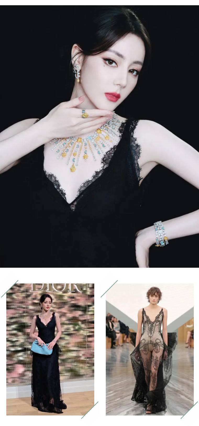 热巴参加迪奥珠宝晚宴,一身来自2026春夏系列的黑色蕾丝长裙再次惊艳众人,透视裙摆若隐若现,性感却不俗;蓝色手袋是点睛之笔,打破全黑的沉闷,和钻石项链的冷光形成冷暖碰撞,贵气感直接拉满。