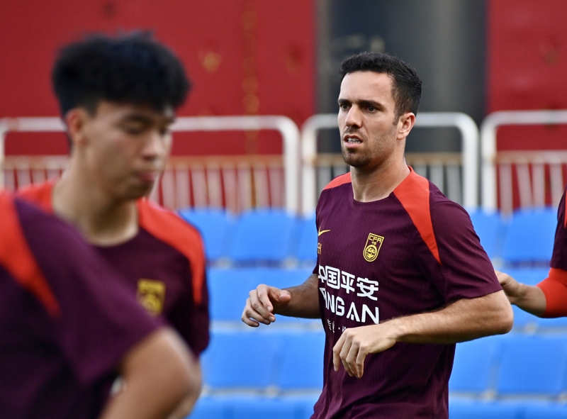 2025年7月2日,中国队球员塞尔吉尼奥(右)在训练中。 当日,中国国家男子足球队在辽宁大连进行赛前训练,备战将于7月6日至16日在韩国举行的2025年东亚足联E-1足球锦标赛(东亚杯)。 新华社记者 吴青昊 摄