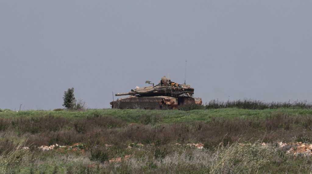 2026年3月27日,一辆以色列(专题)战车驶向黎巴嫩边境。(路透社)