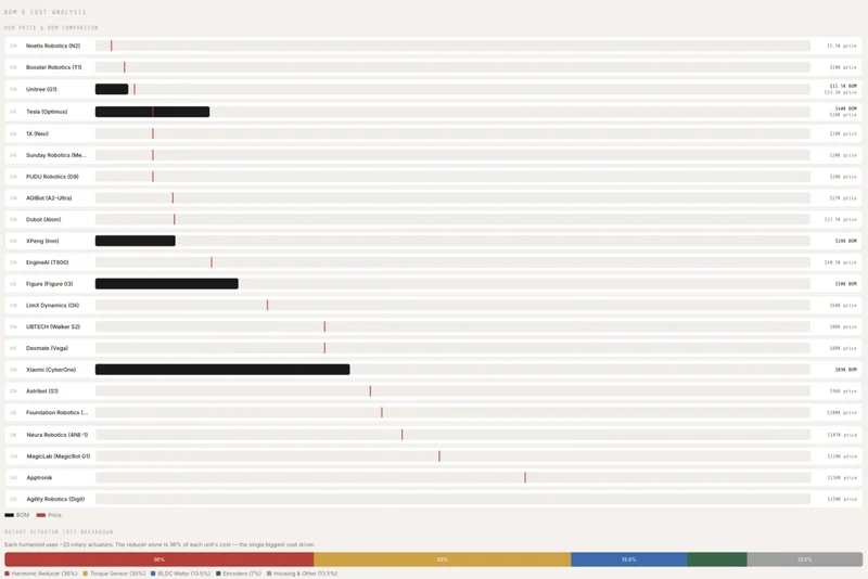 甚至,像 Noetix 这样的厂商,已经探出了 5,500 美元的击穿底线的极限数字。