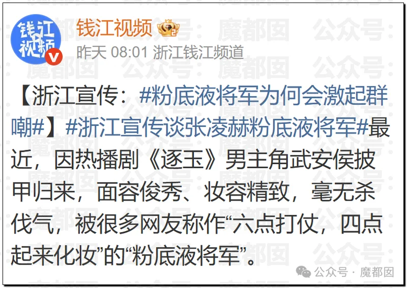 张凌赫演的“粉底液将军”,被军媒怒批魔都囡