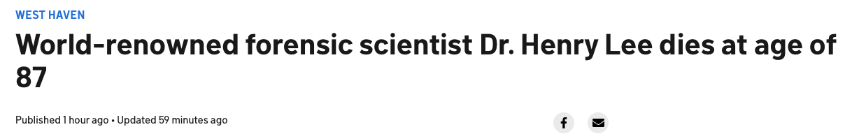 据3月27日报道,国际知名华人法医专家李昌钰博士(Dr. Henry Lee)于周五(3月27日)在内华达州亨德森(Henderson)的家中安详辞世,享年87岁。其去世消息由家属与纽黑文大学(University of New Haven)联合发布。