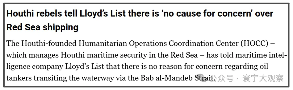 可能是担心这番话会向外界传递错误信息,在3月26日,胡塞组织下的“人道主义协调中心”在一份声明中表示:没有必要担心沙特的原油出口会受到阻碍,当下没有理由阻止贸易的通畅。如你们所见,每天都有包括油轮在内的几十艘船只通过曼德海峡。也就是说,也门共和国致力于继续保护红海与曼德海峡的航行安全,确保贸易的自由流通。