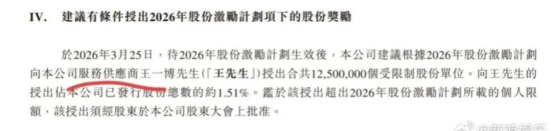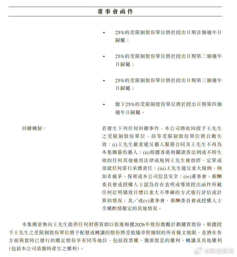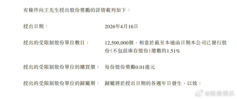 值得一提的是,这次股权激励用的是2025年回购的库存股份,未增发新股稀释老股东利益,既显财技,也体现对王一博的重视,堪称内娱新型绑定模式。