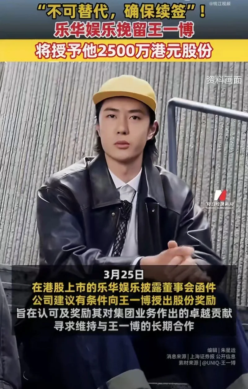 此前双方是传统经纪合约,如今则升级为“股东+合作”的混合模式,既保障乐华权益,也最大化尊重王一博的自主性。