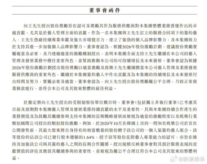 这次续约最受关注的,就是乐华拟授予王一博的1250万股受限制股份单位,这正是乐华留住他的“杀手锏”,背后藏着清晰的商业逻辑。