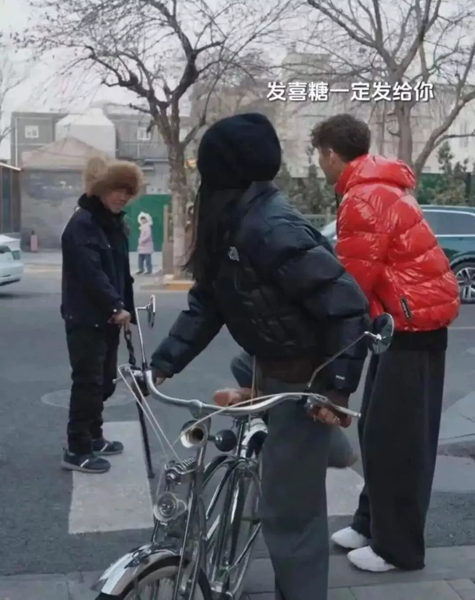 2月3日,瞿颖与胡兵在北京胡同拍摄广告,遛弯大爷观察两人许久,问了句:“你们照相,不发喜糖?”
