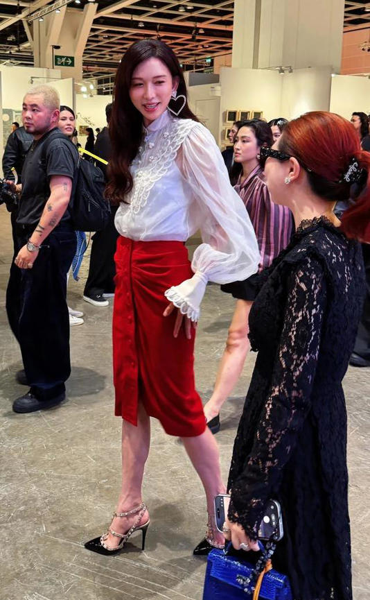 林志玲多年以来一直是华语娱乐圈的标志性人物。她这次身穿白色蕾丝上衣,搭配酒红色裹身裙,高挑的身材在人群中比较显眼。标志性的温柔笑容和熟悉的声音依然存在。她在现场与观众交流,还和身边的人自然交谈。不少人提到,和她合影时感觉亲切舒服。