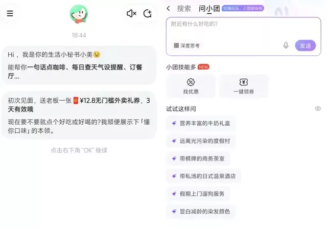▲「小团」和「小美」首页页面