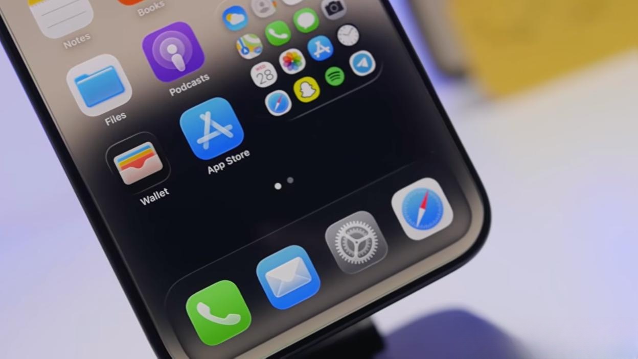 iPhone手机主屏幕 · 显示App Store等系统应用图标