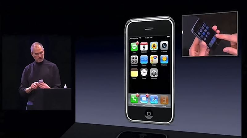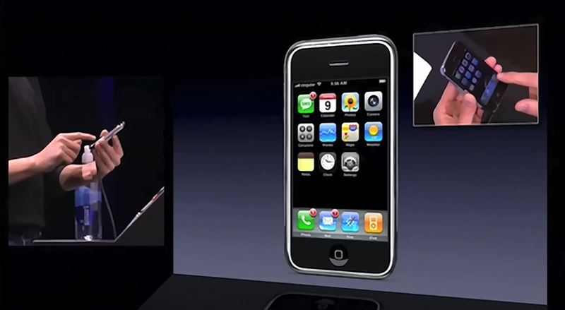2007年1月,乔布斯站上舞台,说苹果今天要发表三样产品:一台iPod、一支手机,以及一个网络通讯装置。 接着他停顿后宣布,这三样其实是同一个产品。 全场瞬间沸腾,iPhone正式诞生。 它不是第一支手机,也不是第一支能听音乐或上网的手机,但它却是第一支真正把这些功能整合得漂亮、直觉、流畅、让人一目了然、一用就懂的装置。