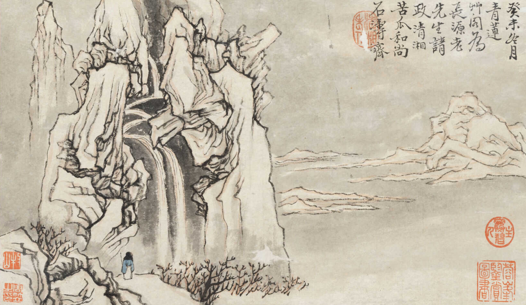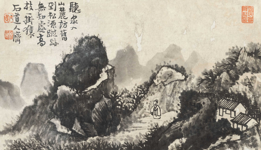 石涛这画,就像是他跟传统山水画的一场“斗嘴”。他不走寻常路,用自己的方式把山水和高士画得活灵活现,充满了生机和趣味。