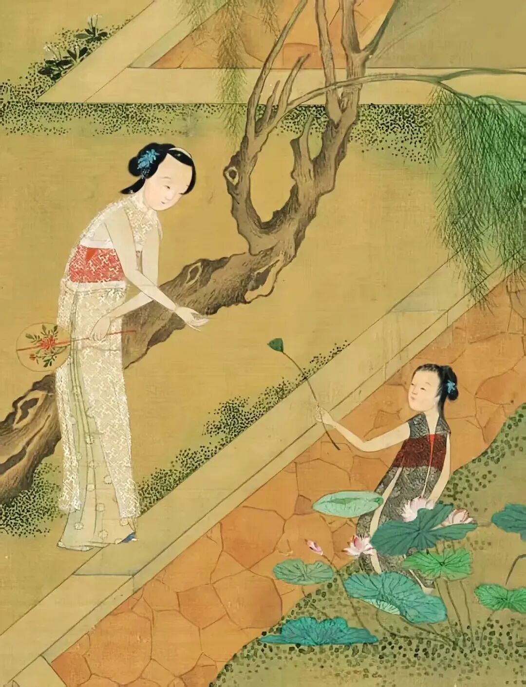 嘿!你知道吗?明代仇英的《摘莲图卷》里,女子们居然穿着短袖采莲!这可不是穿越剧,而是真实的历史画面。