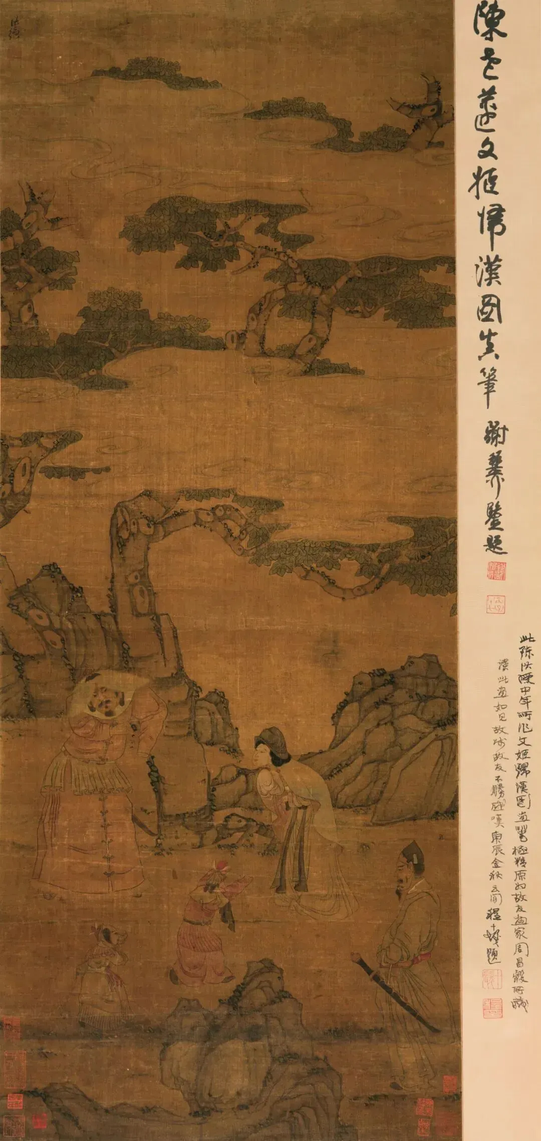陈洪绶这版《文姬归汉》,跟咱印象里那种大场面、热闹的画儿完全不搭边。他不画大漠驼队,也不把汉使威风凛凛地画出来,反而把镜头怼到了“离别”这个最扎心的瞬间。