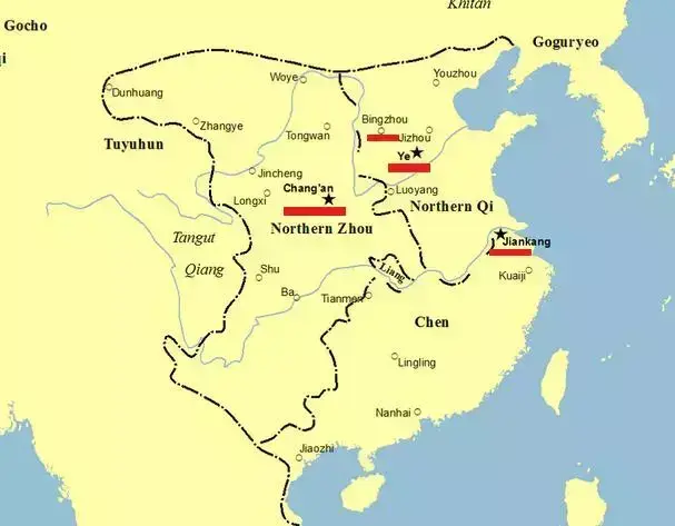北魏分裂后,在关陇之外的东亚大地上,并存着 3 个政治中心。分别是坐镇内亚交通线的晋阳,贵为东魏北齐之都的邺城,及南朝的心脏建康。与它们相比,长安旧城狭小拥挤,还被生活垃圾污染了地下水源。虽是杨坚老巢,却毫无竞争优势可言。