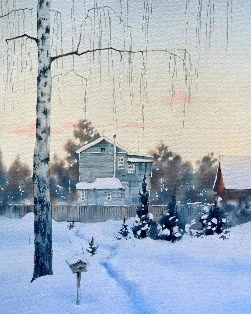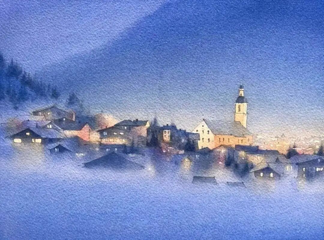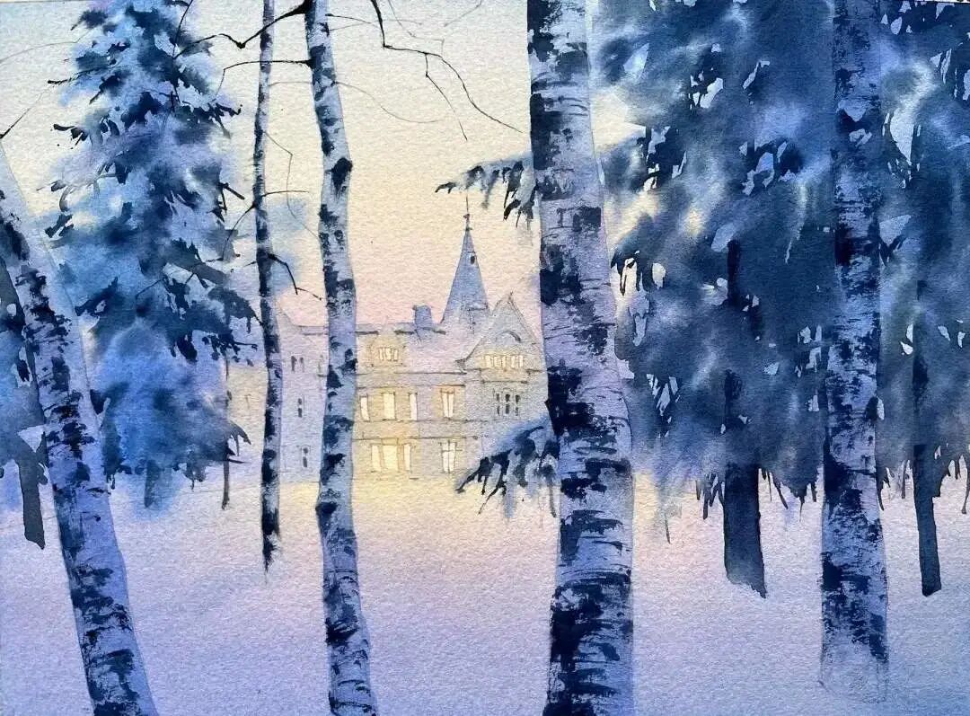 画家Victoria水彩作品雪景欣赏
