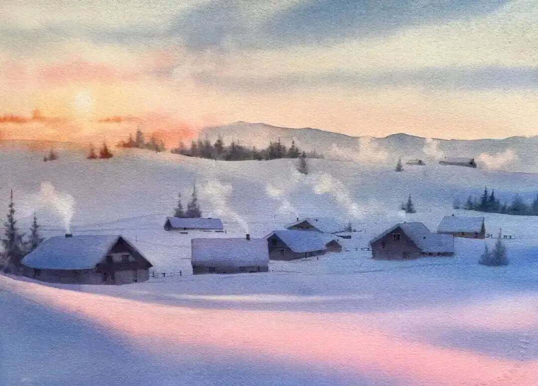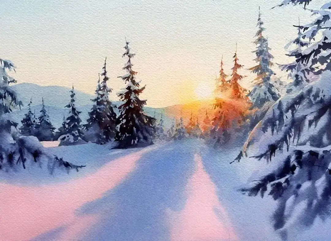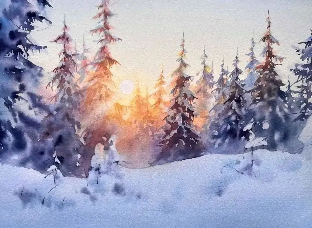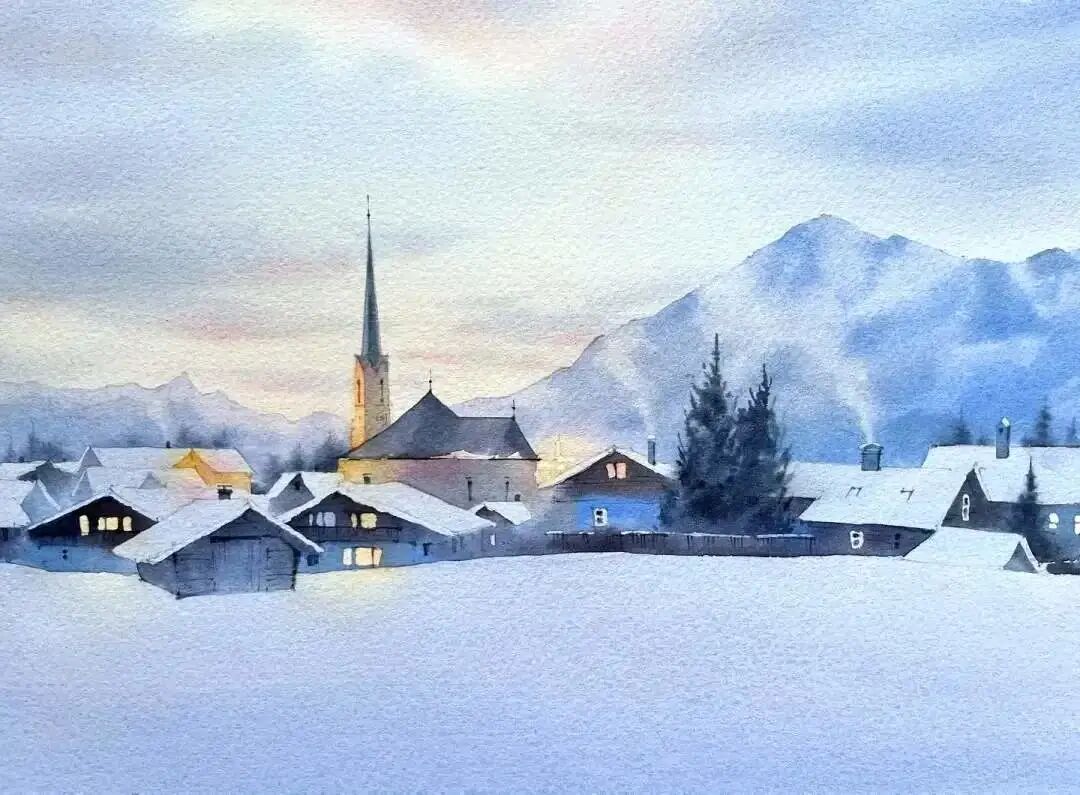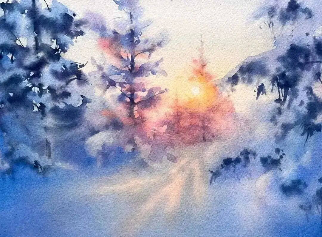 水彩作品的冰雪之美水彩名师