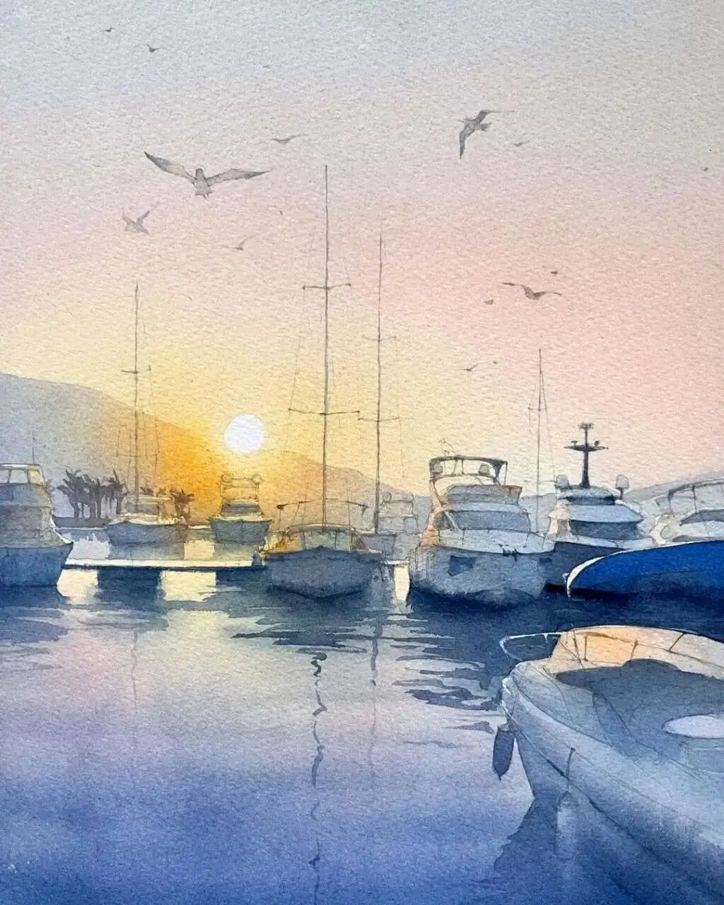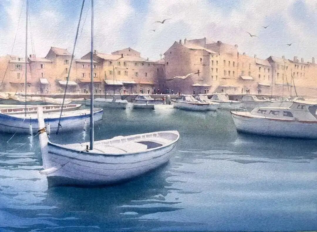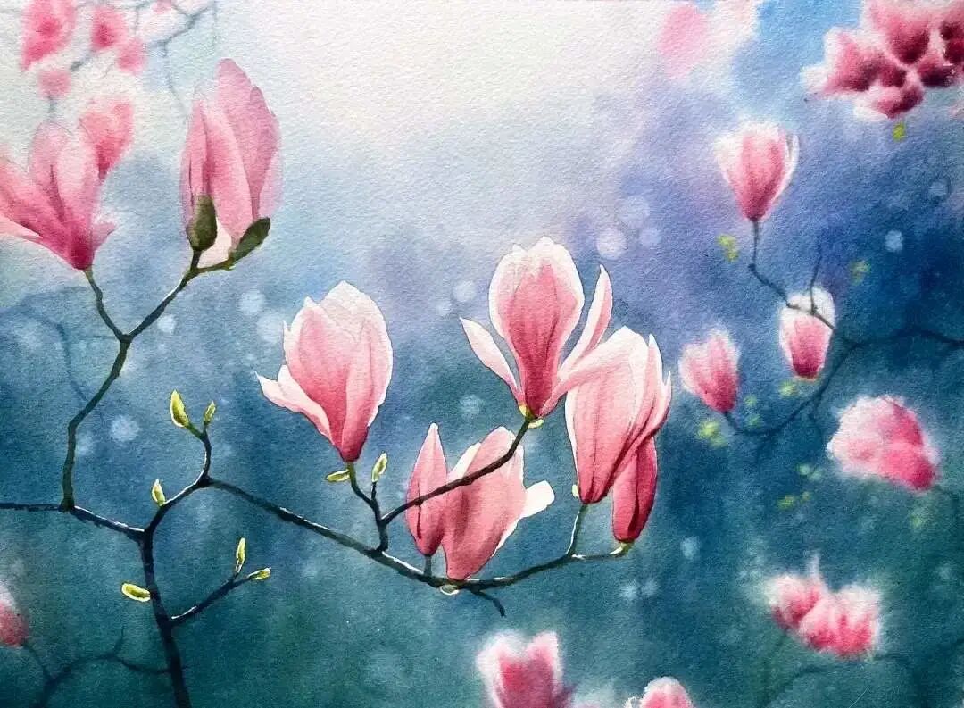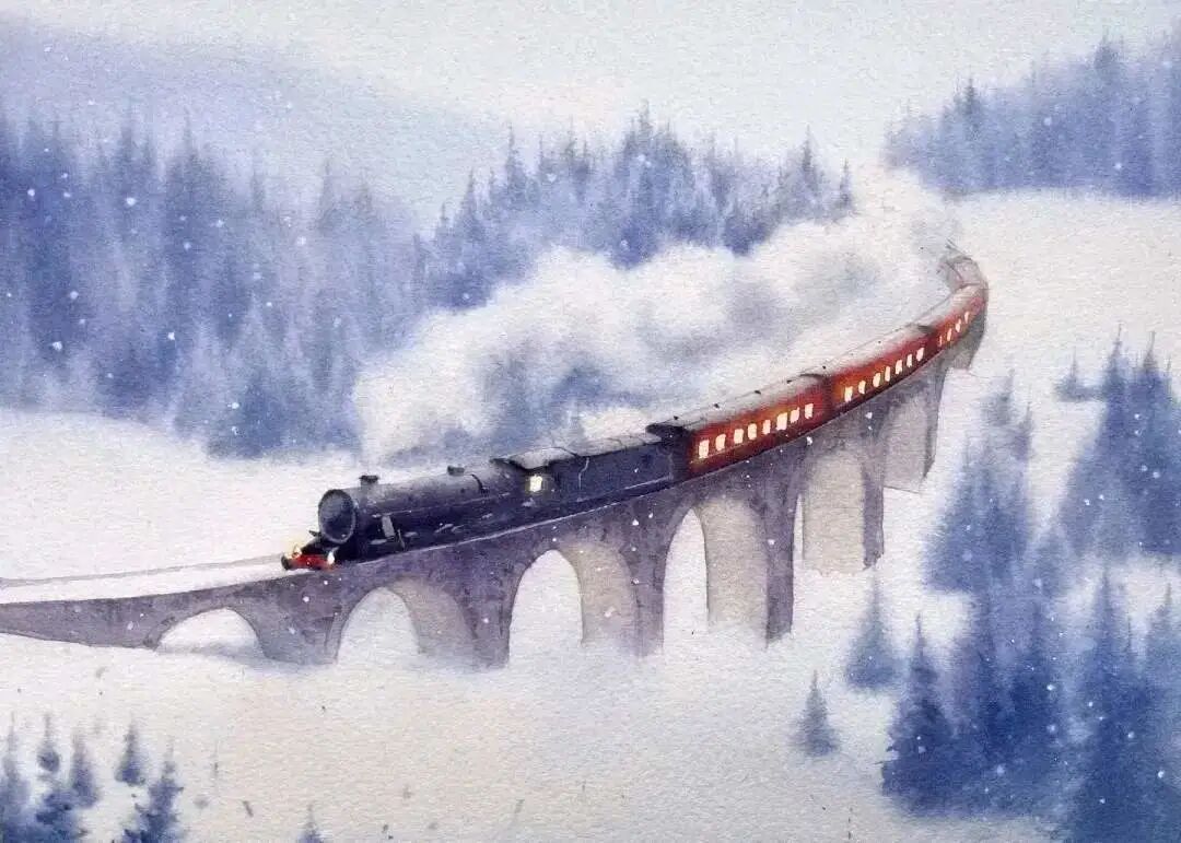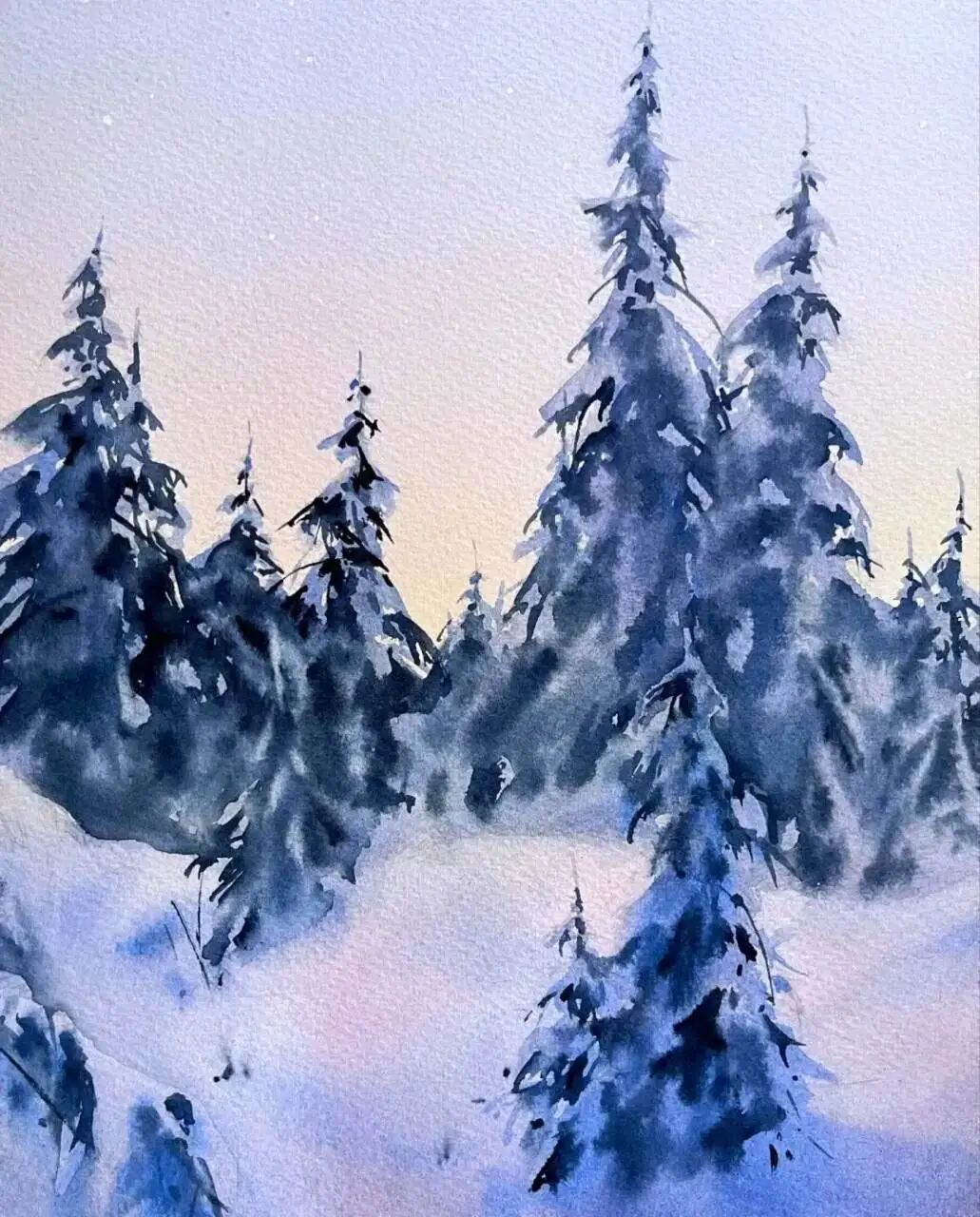 水彩作品的冰雪之美水彩名师