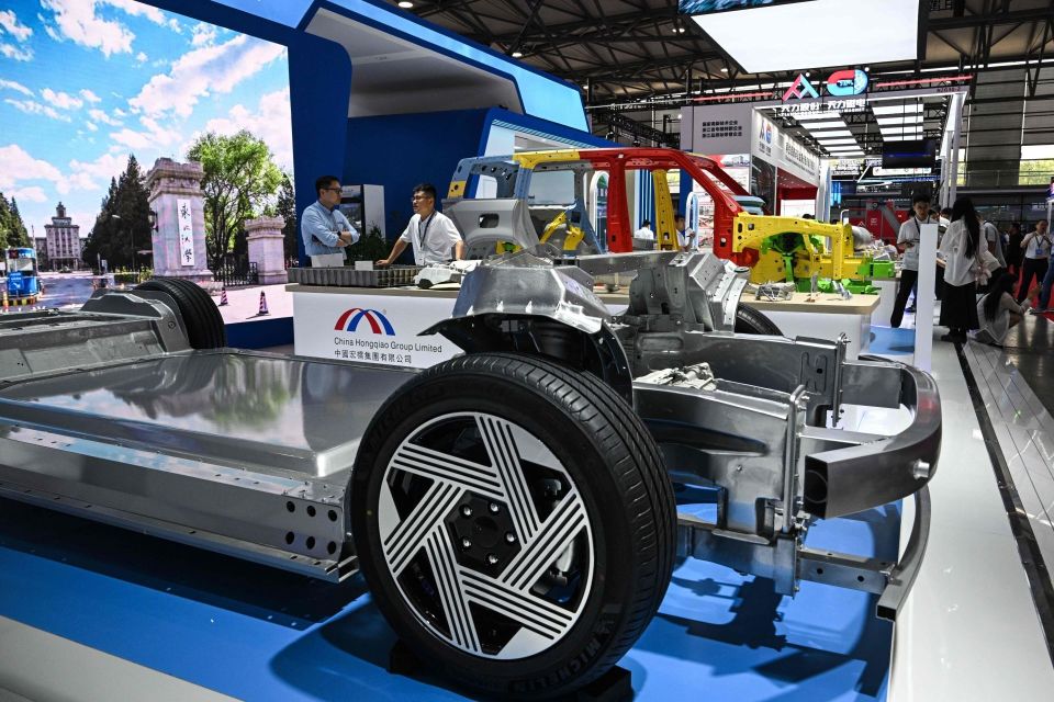 2025年7月10日,上海,中国国际铝工业展览会上,中国宏桥展示新能源汽车等铝需求。视觉中国/图