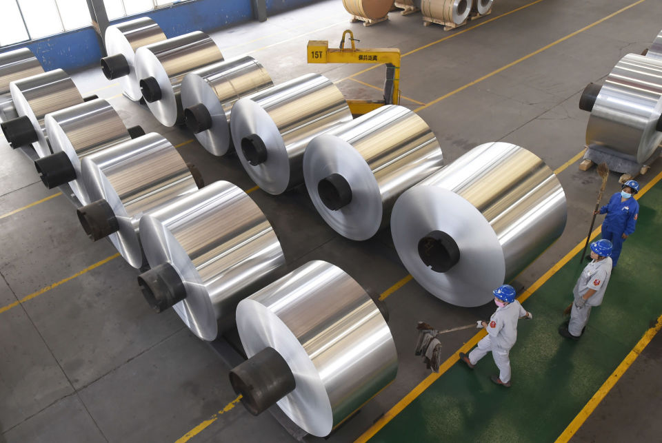 2018年9月13日,山东滨州邹平市一家铝业公司工人在劳作。视觉中国/图