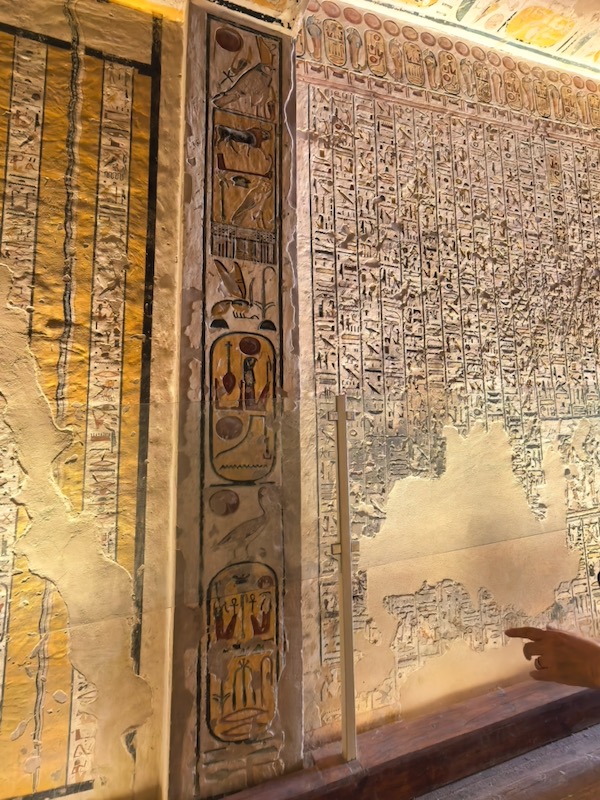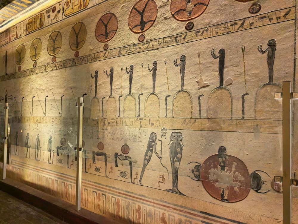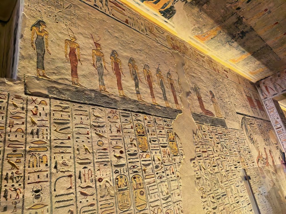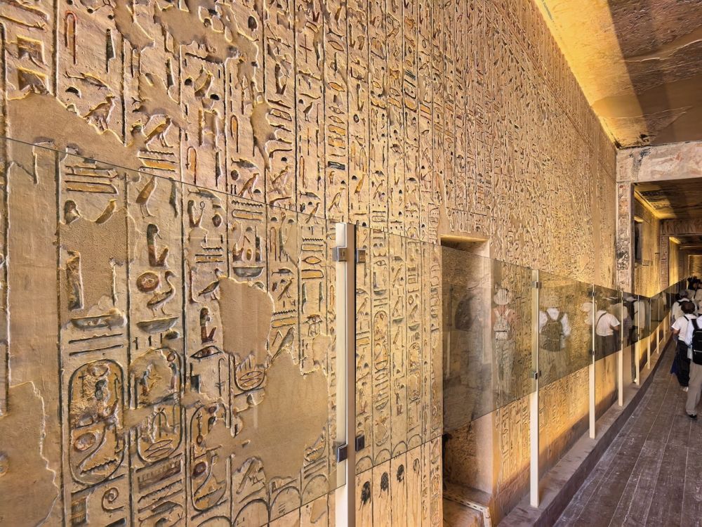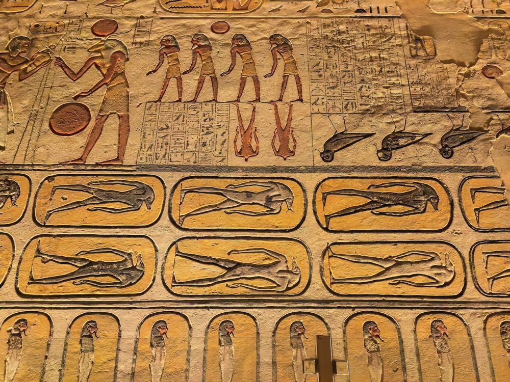 墙壁上的文字内容来自《洞穴之书》(Book of Carverns)、《大地之书》(Book of the Earth)、《拉神祷文》(Litany of Ra)、《白昼之书》(Book of Day)、《黑夜之书》(Book of Night)以及《亡灵书》等等。