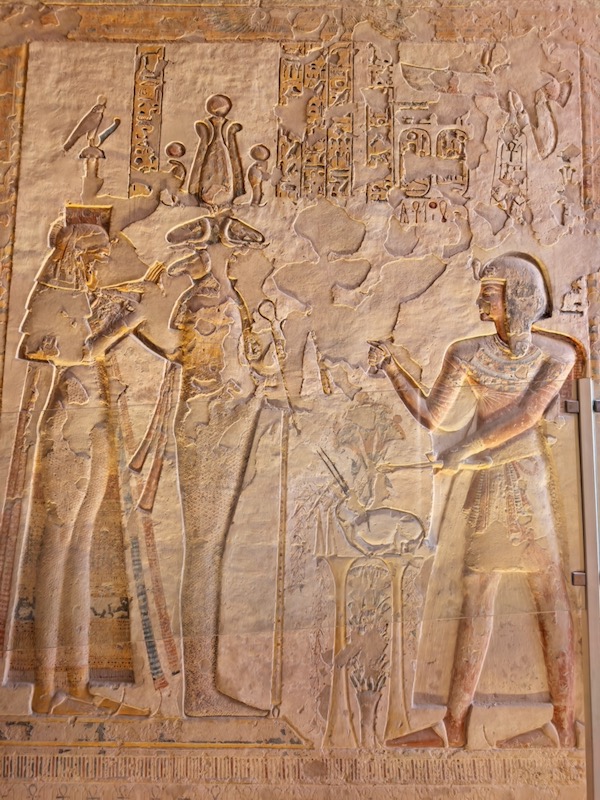 法老向库努姆(Khnum)敬献,库努姆是尼罗河源头之神、陶工之神和造物之神