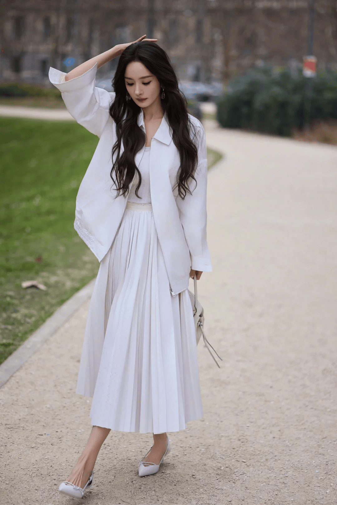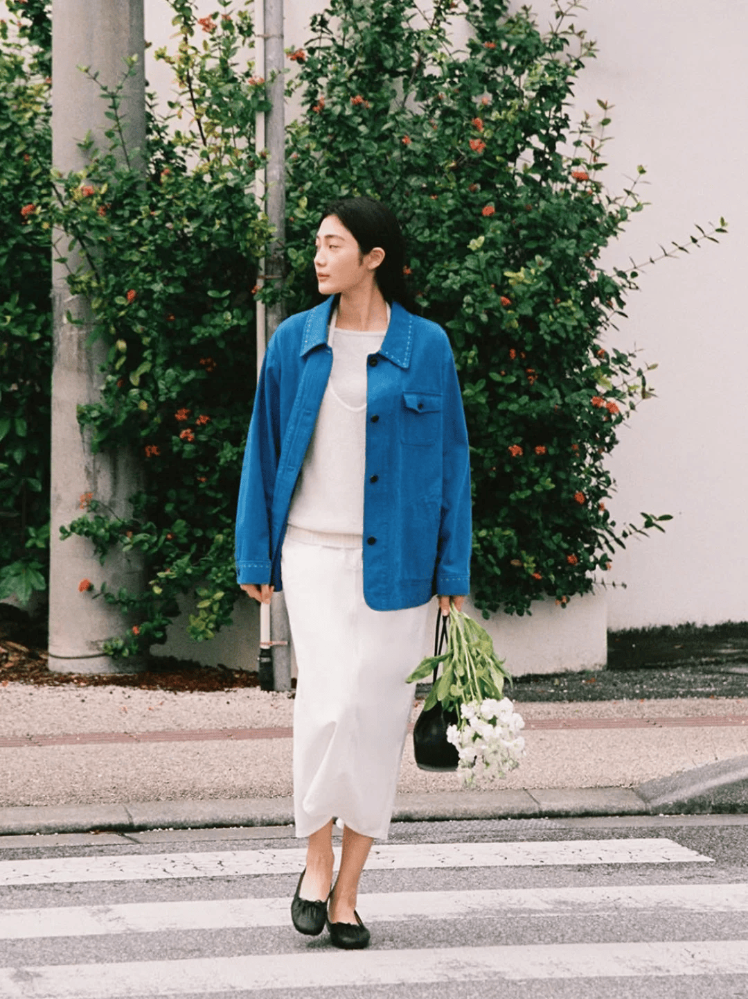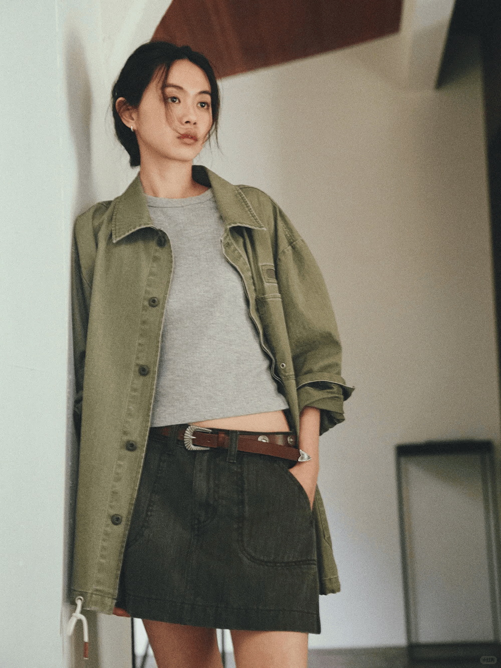 短款夹克+高腰裙是显高的黄金法则。