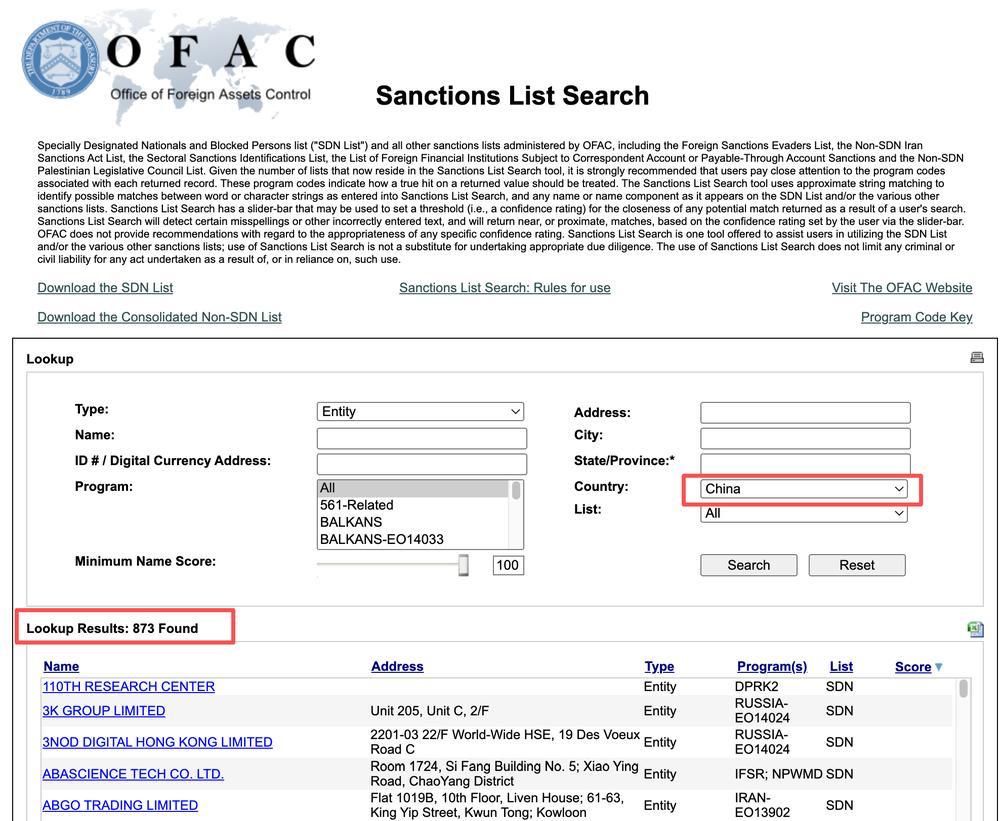 在公开名单范围内,中芯国际、海康威视、中科曙光、大疆、华为、商汤、旷视科技、云天励飞等一批核心AI公司与研究机构,均在影响范围之内,相关制裁名单条目已达到873条。
