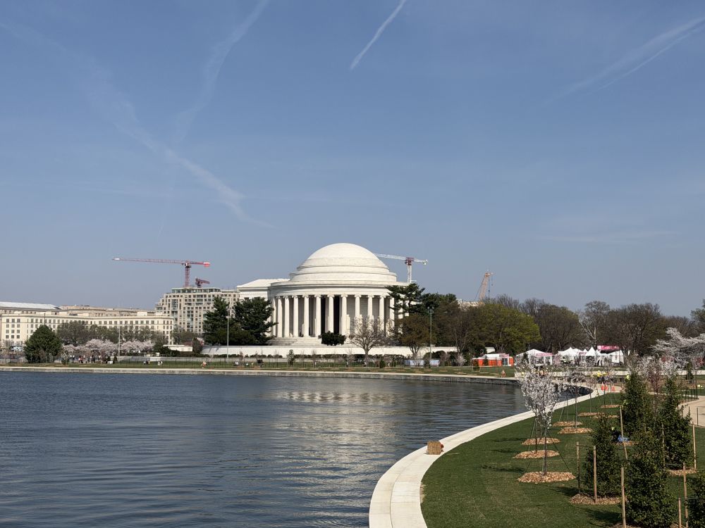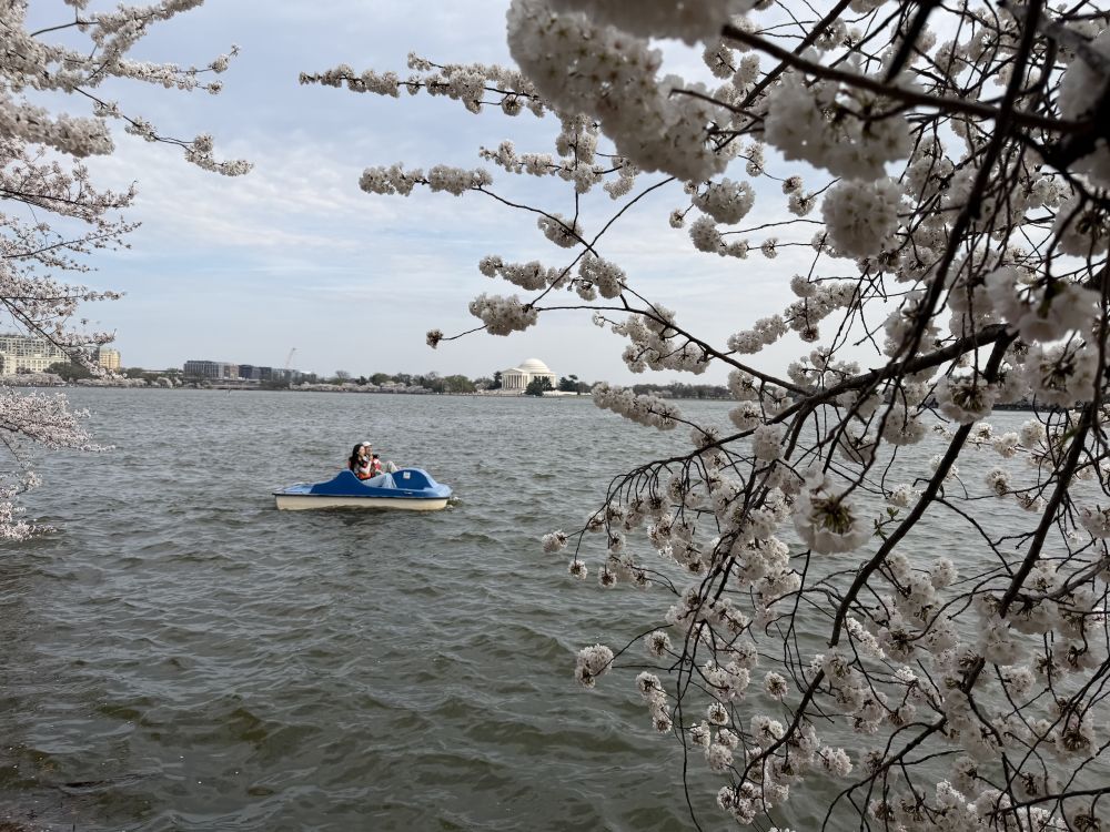气象预报显示,今晚天气便会转凉并开始降雨,且整个周末的天气都不尽如人意。这意味着,如果错过今日,下周樱花的盛花期恐怕就要过去了。一番合计后,我们决定午饭后便动身,驱车前往华盛顿特区的杰斐逊纪念堂湖畔(Tidal Basin)去赴这场春天的约会。