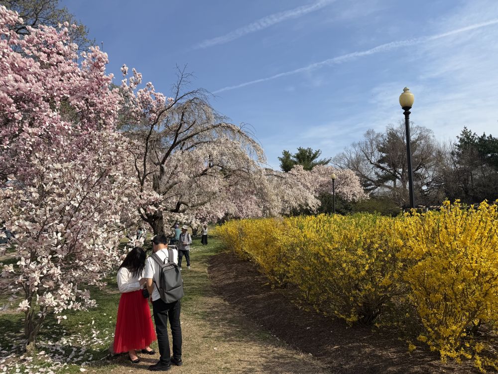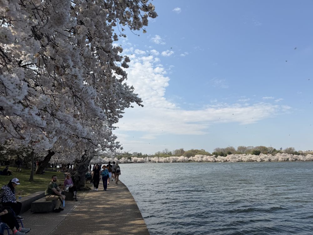 周四上午在公司刚坐定不久,就接到了女儿的电话。她兴冲冲地告诉我,今天正是华盛顿樱花盛开的顶峰日(Peak Bloom)。更难得的是,今日阳光灿烂,室外气温回升到了宜人的65度。