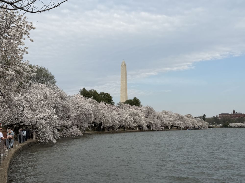 每年三月底到四月初的那一两周,堪称美国首都最美的季节。市内的大街小巷与公园里,成片的樱花竞相绽放,如云似霞,构成了一道极其迷人的风景。