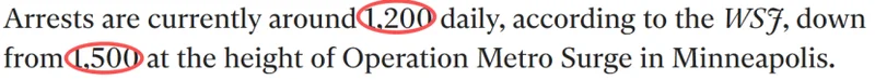 据《华尔街日报》报道,目前每日逮捕人数约为1200人,低于明尼阿波利斯高峰期的1500人。