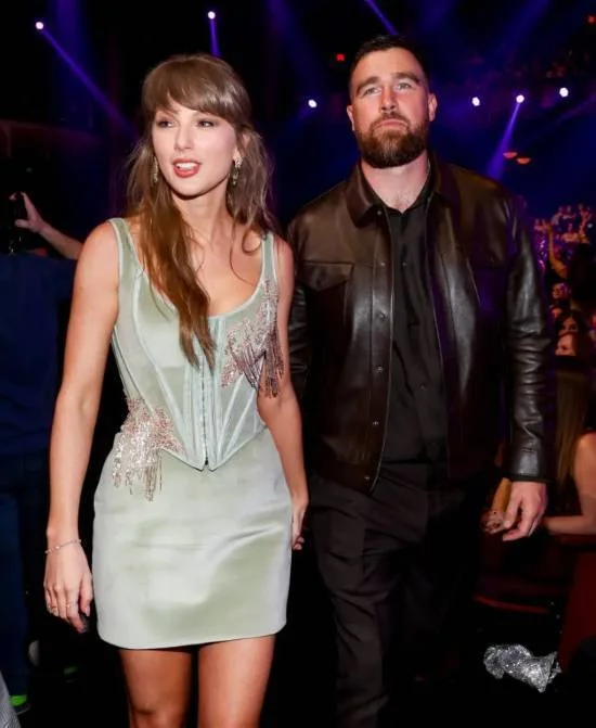 造型搭配上,泰勒也打破常规,将头发梳成温柔的半扎发造型,一改以往标志性的红唇,换上柔和亮泽的粉色唇妆,多了几分温婉甜美元气。珠宝配饰更是点睛之笔,镶嵌双色碧玺的Dena Kemp耳环夺目吸睛,Nak Armstrong耳骨夹增添了几分个性,Selim Mouzannar与L'Dezen品牌的戒指精致小巧,而最引人注目的,莫过于她佩戴的未婚夫特拉维斯・凯尔西赠送的硕大订婚戒指,低调中尽显甜蜜,特拉维斯・凯尔西也一同陪同出席,两人同框画面十分登对。