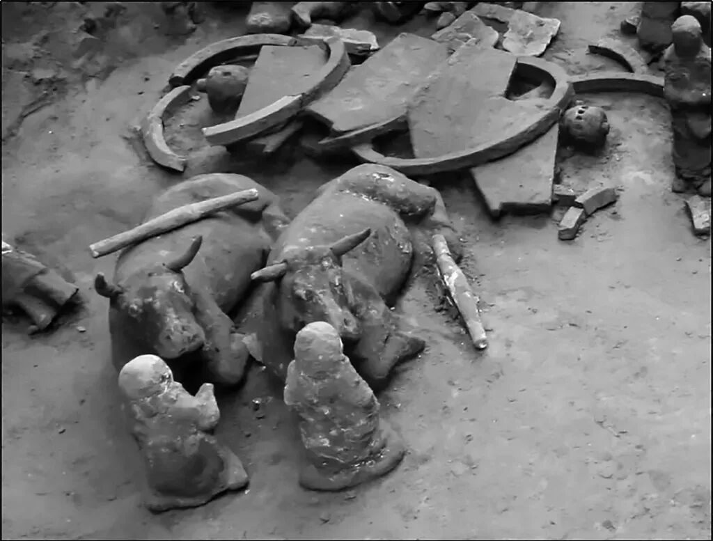 临淄山王村汉墓陪葬坑出土的两架陶制牛车