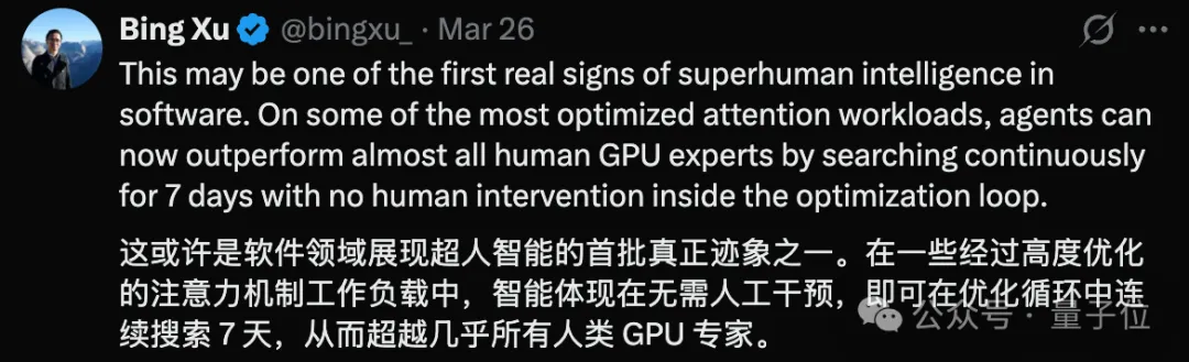 要知道,目前人类专家对这类底层算子的优化已逼近硬件极限,结果现在智能体还能将这个极限再往上调一调。