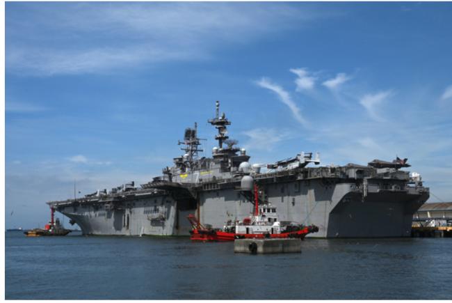 2022年9月27日,美国海军两栖攻击舰“的黎波里号”(USS Tripoli)停靠菲律宾马尼拉港区。(图片来源:Jam STA ROSA / AFP via Getty Images))