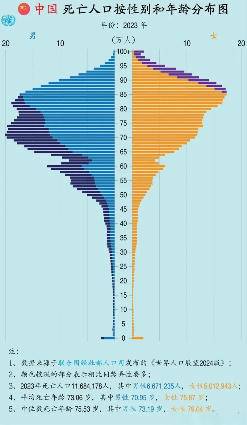 如果分性别来看,中年阶段,男性死亡率基本上是女性的2-3倍。