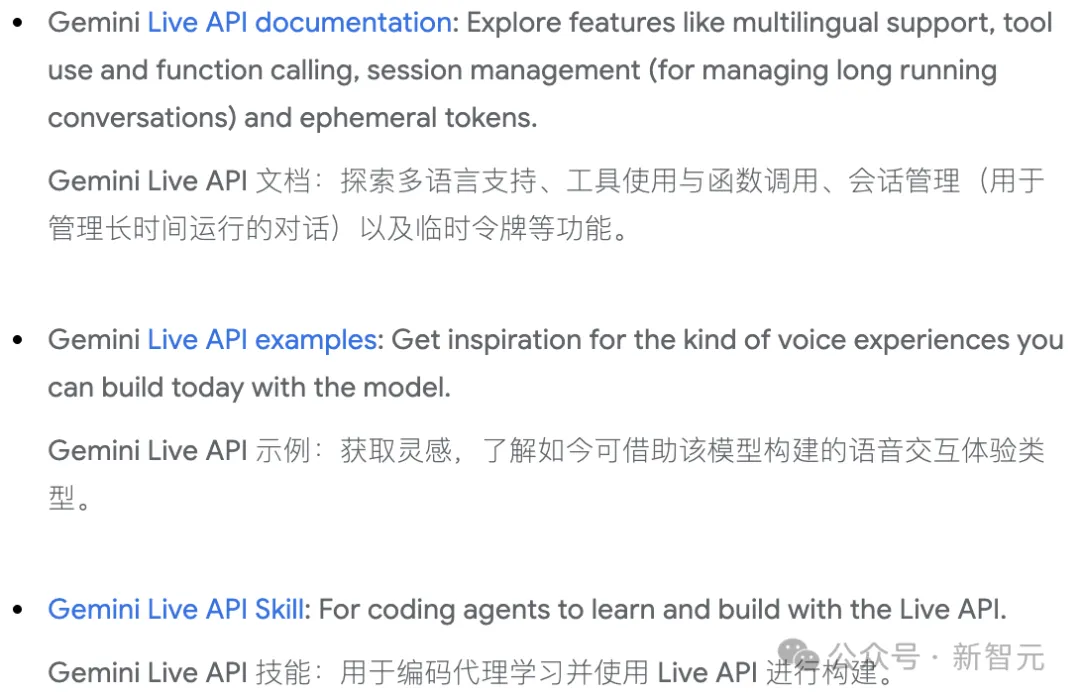 按照官方文档,Gemini Live API基于有状态WebSocket连接,支持连续的音频、图片和文本流输入,并以低延迟方式返回语音结果。